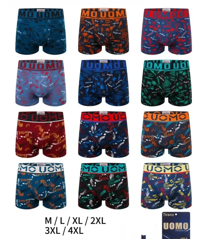 "El Boxer Uomo fue creado para acompañar al hombre moderno en cada momento del día. Confeccionado en algodón y elastano, combina resistencia y comodidad. Este pack de 24 unidades con talles variados asegura que siempre tengas la prenda justa, ya sea para uso personal o para ofrecer a tus clientes."