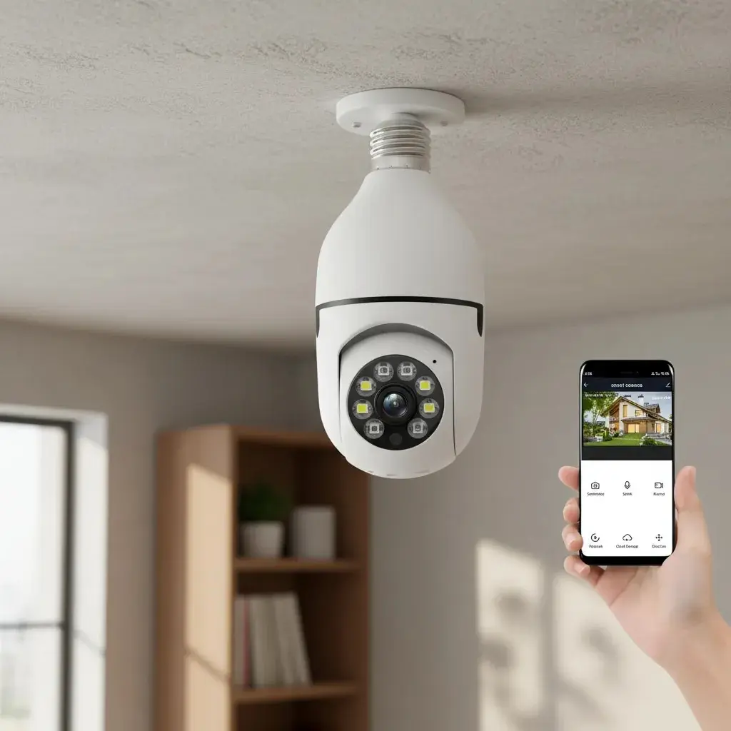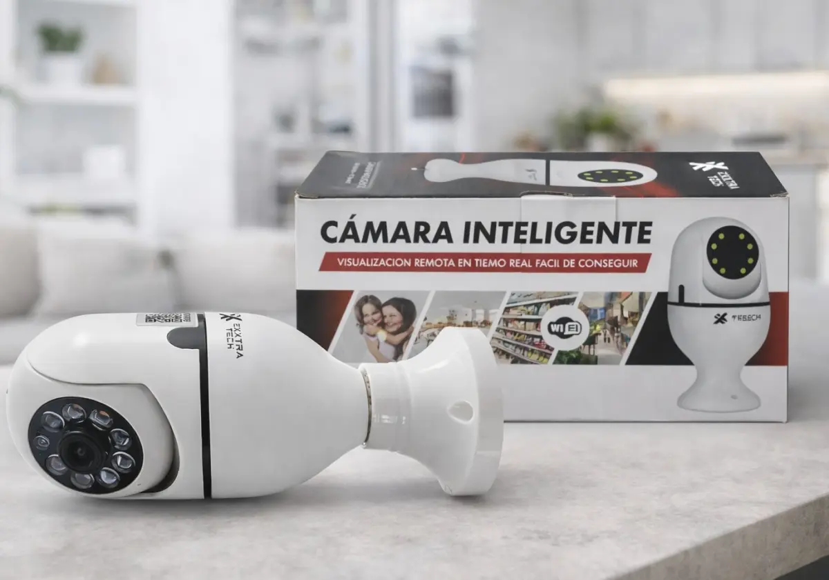 "La Cámara Smart WiFi tipo foco Exxtratech fue diseñada para brindar seguridad sin llamar la atención. Con su formato discreto y funciones avanzadas, permite vigilar tu hogar o negocio desde cualquier lugar. Es más que una cámara: es la tranquilidad de saber que todo está bajo control."