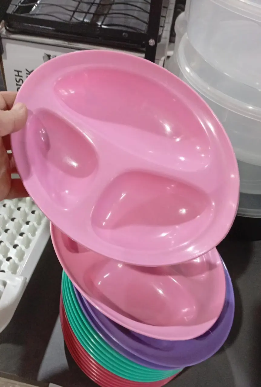 “María organiza una merienda para los chicos y usa los platitos divididos para servir frutas, galletas y jugo. Todo ordenado, colorido y sin líos.”