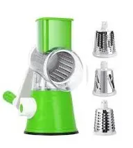 Práctica y eficiente, esta cortadora manual te permite rallar, rebanar y cortar verduras de manera rápida y sin esfuerzo. Incluye 3 tambores de acero inoxidable intercambiables, diseñados para diferentes tipos de corte: fino, grueso y en láminas.