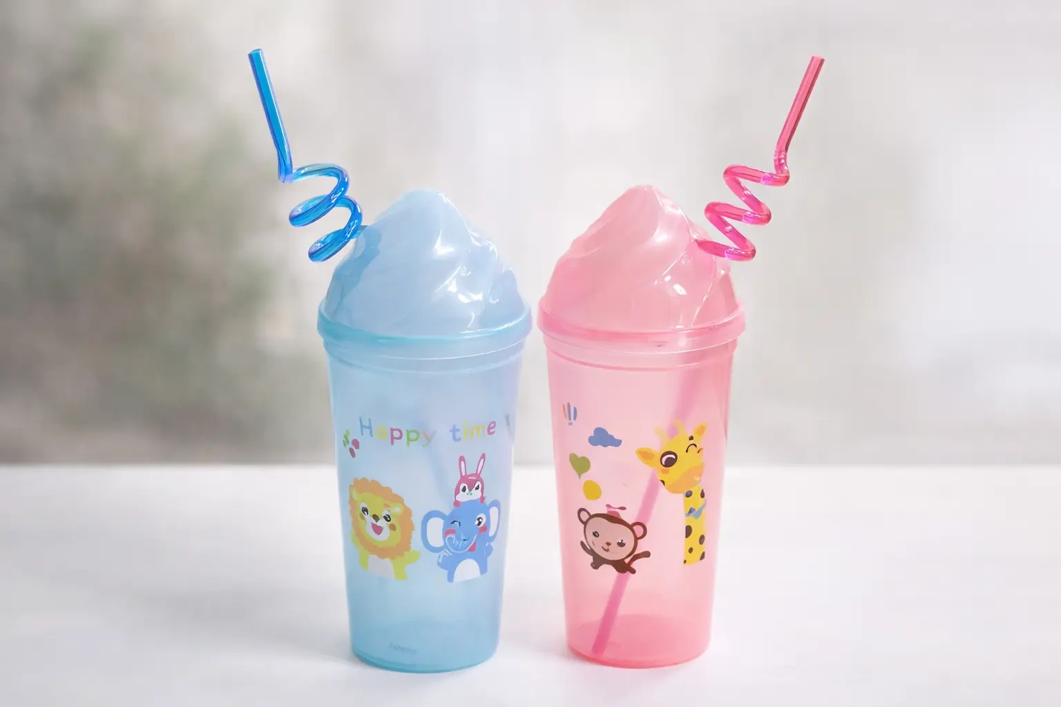 📖 Los vasos infantiles con tapa y sorbete en espiral combinan funcionalidad y diversión. Con sus dibujos de animales y colores vibrantes, son ideales para acompañar las meriendas y momentos felices de los más chicos.