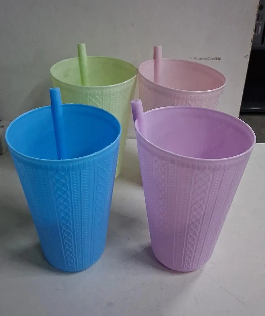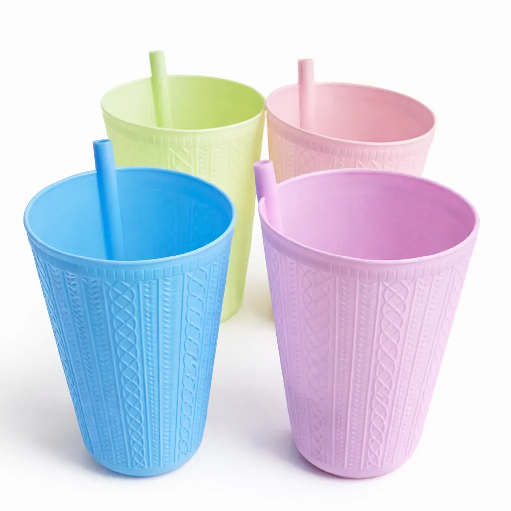 “Vasos pastel con sorbete 🌈. Resistentes, prácticos y llenos de estilo. ¡Elegí tu color y disfruta sin derrames!”